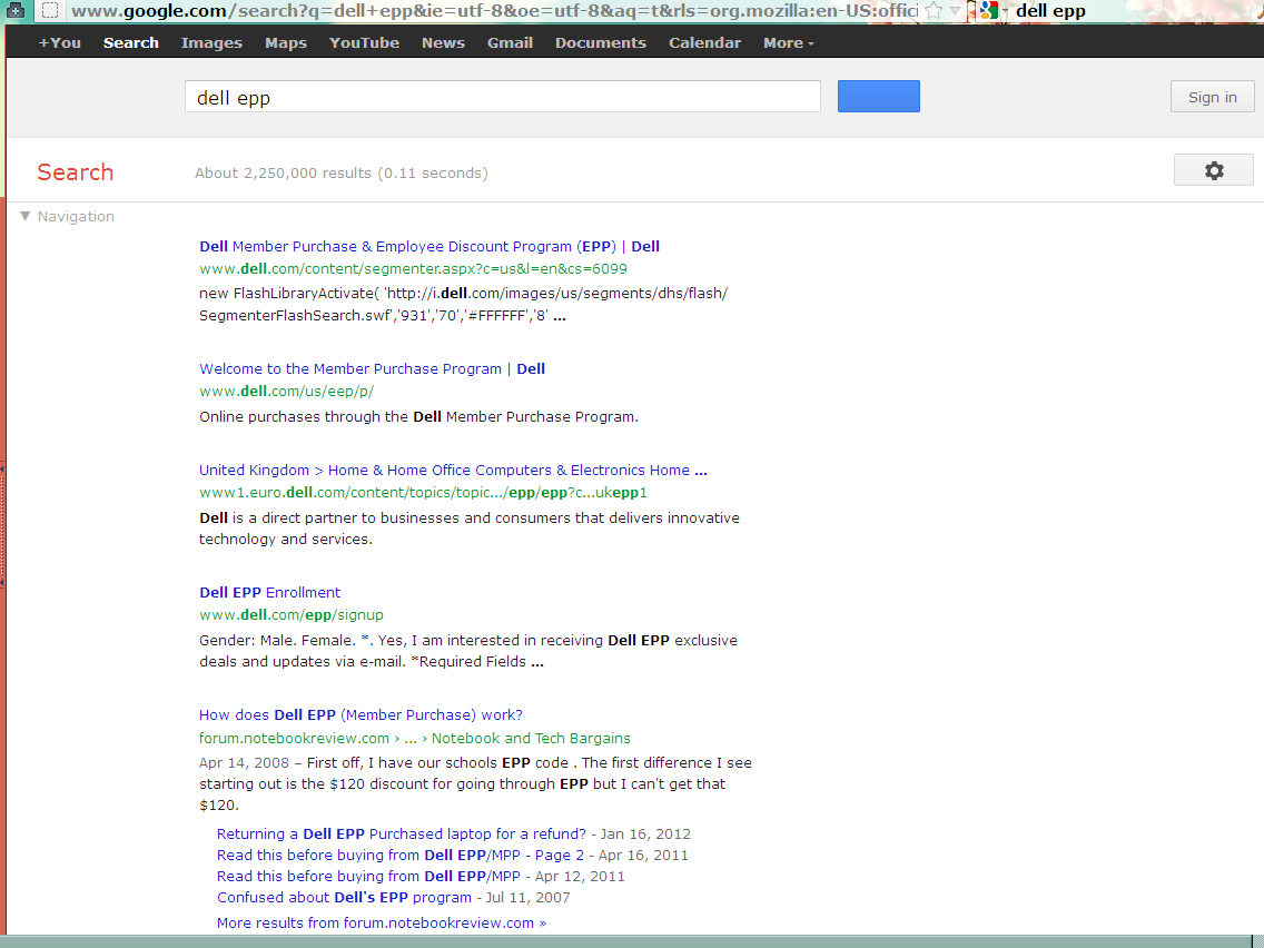 I then did the same search using Sidki's 2010 config. The display is far more pleasing to the eye and much easier to read as there is no sprawling. For the result "How does Dell EPP (Member Purchase) work" see the sublinks listed that are not shown with your config. Monday, March 12, 2012 17;05;17001sidki2010fx10.png (Size: 96.31 KB / Downloads: 868)