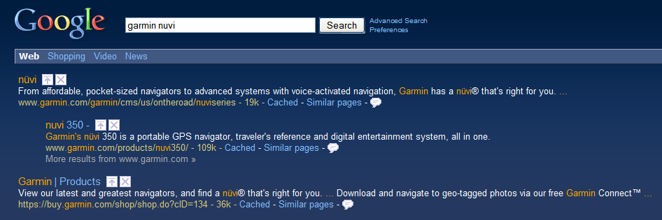 (Apr. 27, 2009 02:11 PM)sidki3003 Wrote: Uhhm... did anyone actually test my proposed changes? For me, so far, from http://www.google.com, IE6 usually gets the query version. K-Meleon usually gets the # version. Searching from 74.125.45.100 always gets me the query version. Downloaded set and added only these mods. Searching with K-Meleon and the # version of Google gets an acceptable page with no numbers, date range box, thumbnails, or modifier links. Traveling tomorrow. HTH |