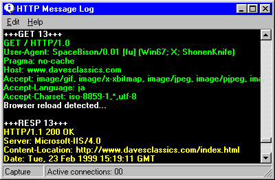 HTTP Header Filters The Proxomitron can also filter HTTP header messages. These are plain text messages sent between your browser and the web server. They contain various information about your browser and the items you're viewing. This is, for instance, where those notorious "web cookies" can be found. Although certain messages will affect your browser's operation, several others are purely informational and not really needed. The Proxomitron allows you to alter delete or even add any HTTP header message. Also it's log window allows you to easily view all header messages sent between your browser and the web server.