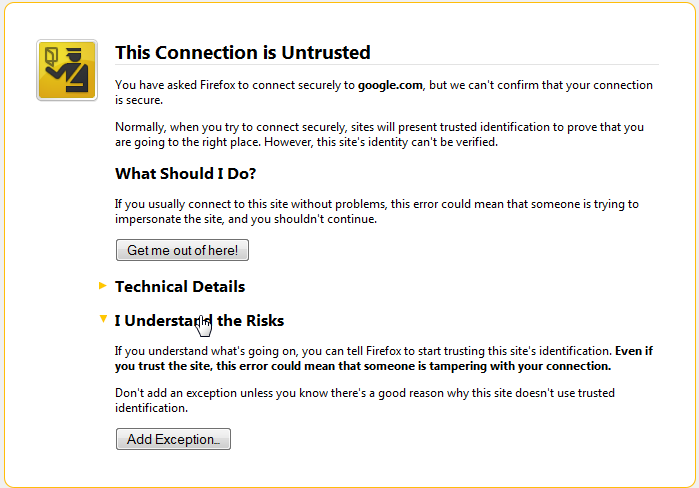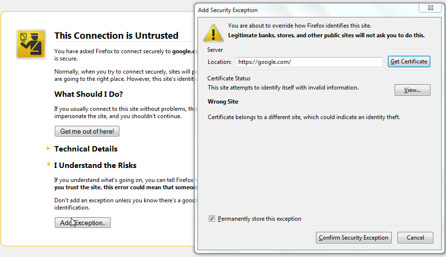 Clicking "Add Exception" pic3 pic3.png (Size: 53.76 KB / Downloads: 848)