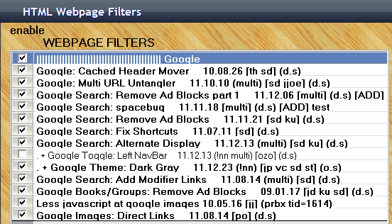 BTW, Ozo's filter to toggle the left side column on search results is NOT working on SeaMonkey 2.6.1. I don't see the column but there is NO toggle switch if I do want to see it. (I don't have the very latest SM because I am waiting on an extension to be compatible but I will install version 2.8 as soon as it is released as it fixes a long standing bug that is very irritating and possibly Ozo's filter will work then).