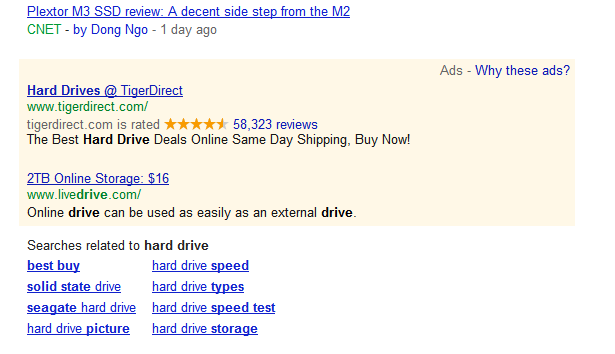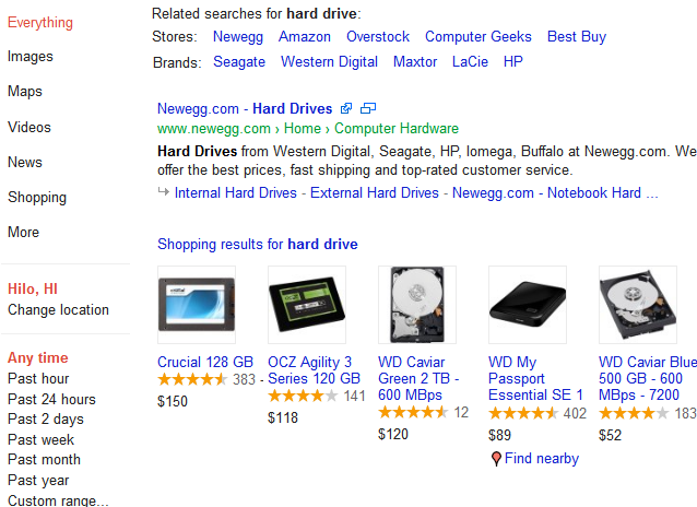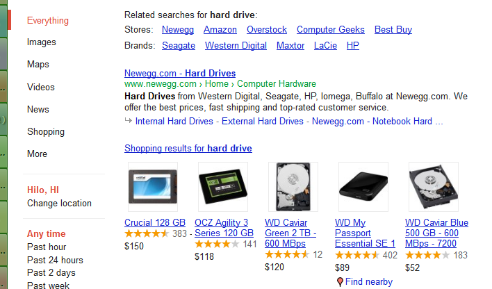 It would be nice if Proxo also filtered out all the irrelevant junk on the page like RELATED SEARCHES FOR "HARD DRIVE" at the top with the categories "Stores" and "Brands".