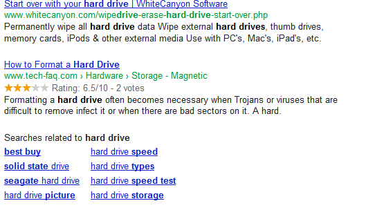 I would also like Proxo to filter out the junk at the bottom of the page: Searches Related to Hard Drives and then Google lists a bunch of KEYWORDS.